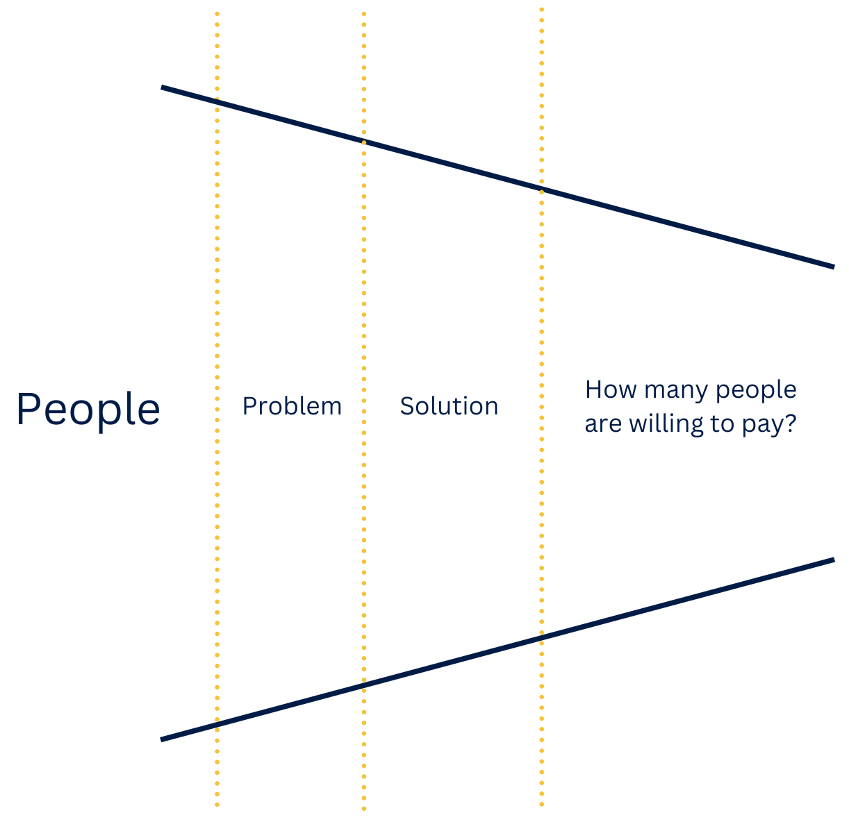 It’s like a funnel: How many people actually have this problem? How many would choose your solution? How many are willing to pay for it?